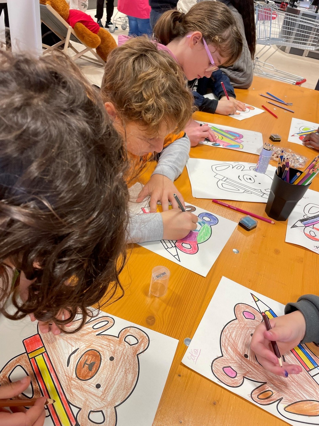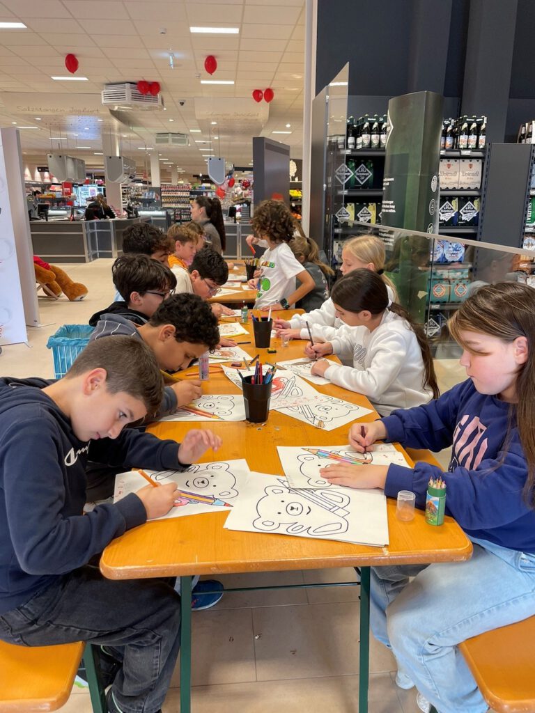 Ende Oktober besuchte eine Gruppe Viertklässler der Ganztagsschule gemeinsam mit ihrer Betreuerin Frau Balahorli, die ihr Anerkennungsjahr im Rahmen der Erzieherausbildung bei uns macht, den neuen REWE Petz Markt in Wissen. Dort nahmen die Kinder mit viel Freude am Malwettbewerb teil. Die Aufgabe bestand darin, den vorgegebenen REWE-Bären farbenfroh und kreativ zu gestalten. Die Aktion hat allen sehr viel Spaß gemacht und es war ein schönes gemeinsames Erlebnis für die Kinder.