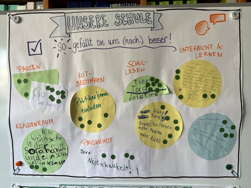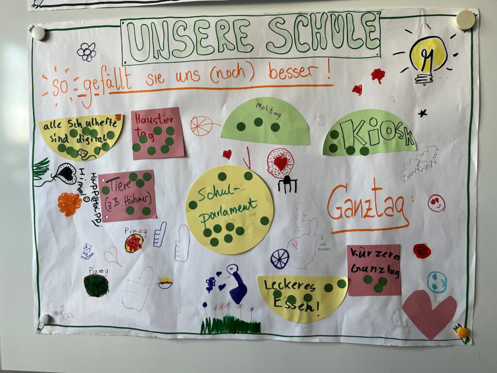 In einer wertschätzenden Atmosphäre konnten die Kinder ihre Gedanken, Wünsche und Ideen äußern. Sie sprachen darüber, was ihnen an unserer Grundschule gut gefällt, aber auch darüber, was ihnen fehlt und was sie sich für ein noch angenehmeres und gerechteres Schulleben wünschen. Dabei zeigten die Schülerinnen und Schüler viel Verantwortungsbewusstsein, Kreativität und ein gutes Gespür für ein respektvolles Miteinander.